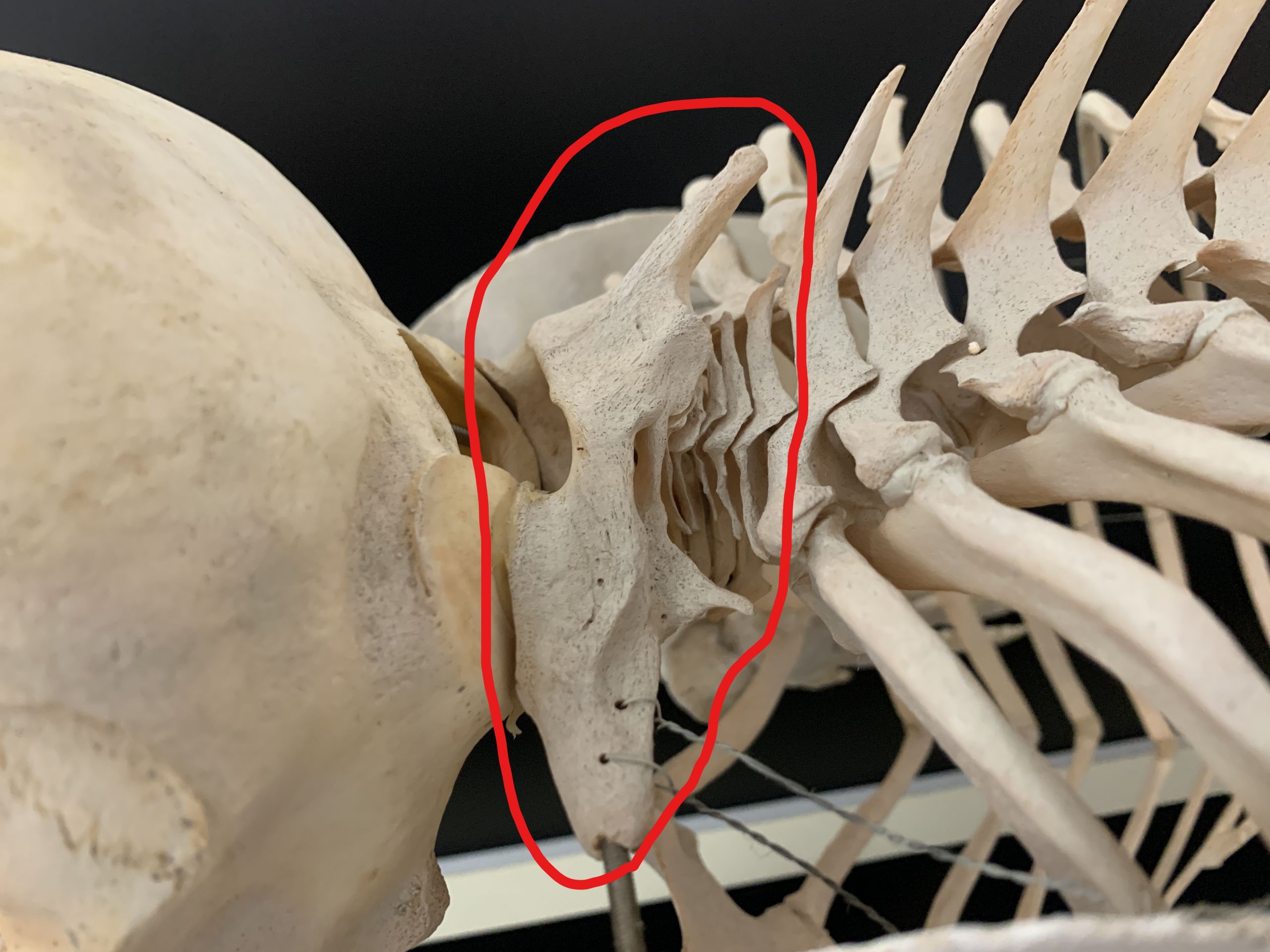 右の写真の赤い丸で囲ったところが首の骨。