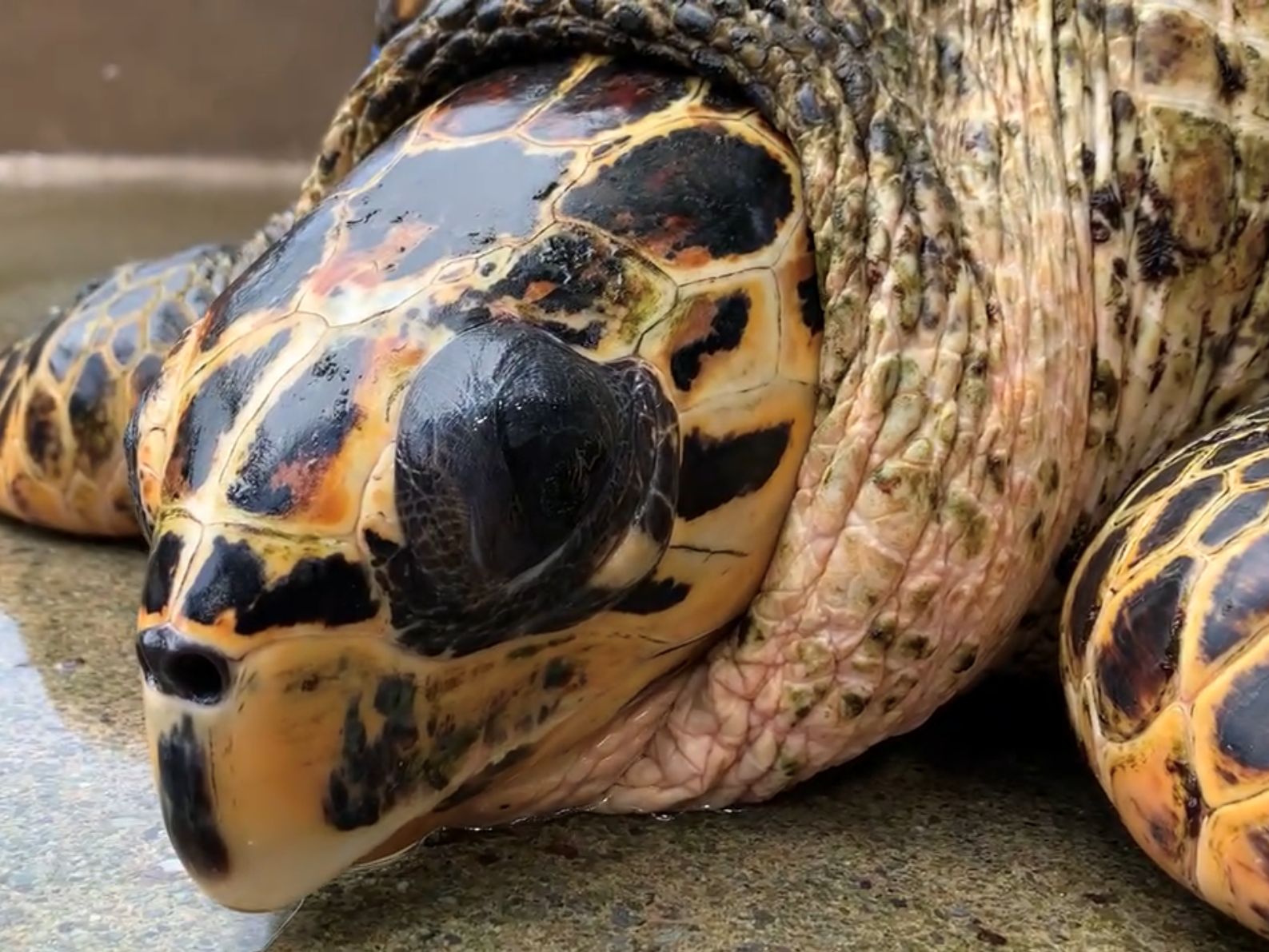 海洋センターの水槽掃除の時にウミガメたちが首を引っ込めるのも、この長い首のおかげですね。