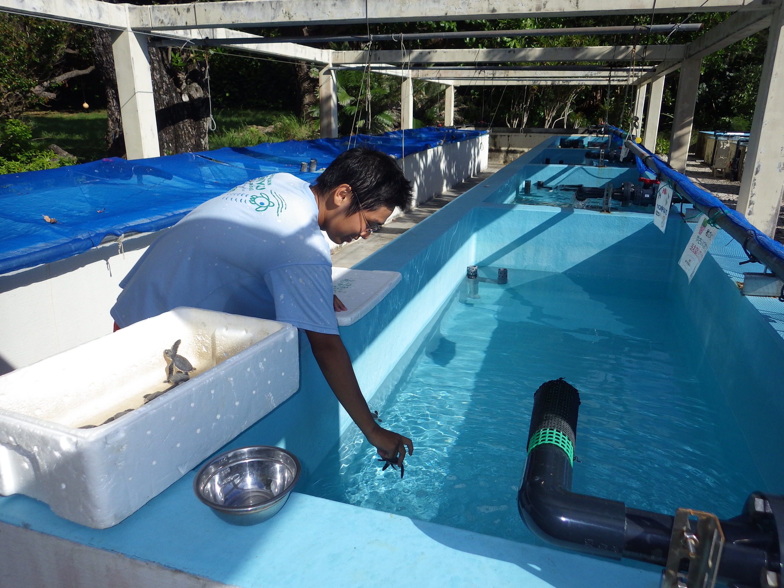 それに伴い、海洋センターで今シーズン初の稚ガメを20頭入槽しましたよ~。