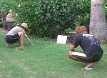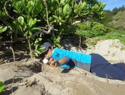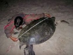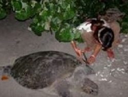 2003年より大村海岸の夜間パトロール(20:00~25:00)を開始しました。稚ガメ保護のため、大村海岸で産卵された卵を海洋センターのふ化場へ移動します。夜間作業が続く時期は生活リズムが不規則になりがちです。また、日中は大変暑いので体力を必要とします。自己の健康管理が大切です。